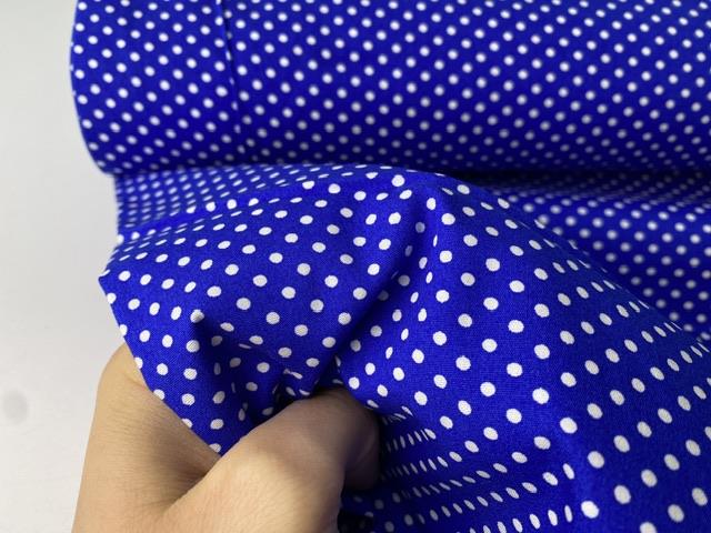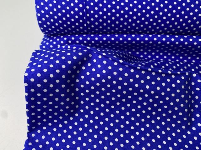 Vævet bomuldspoplin - hvide prikker på intens blå bund
