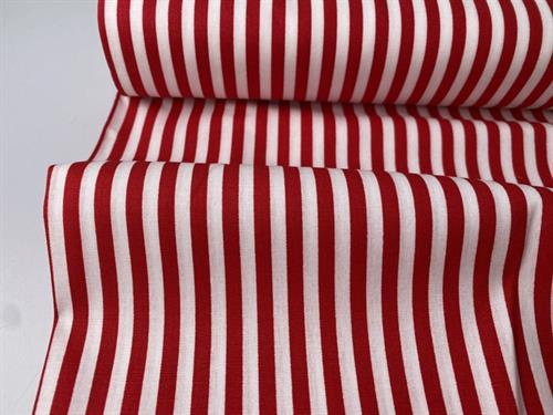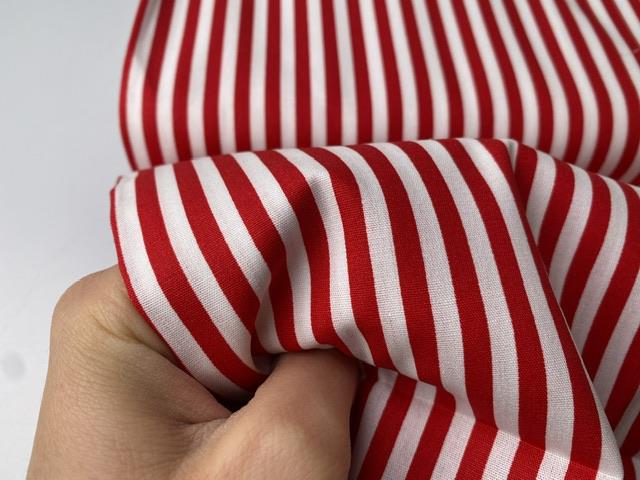 Vævet bomuldspoplin - rød / hvid stribet