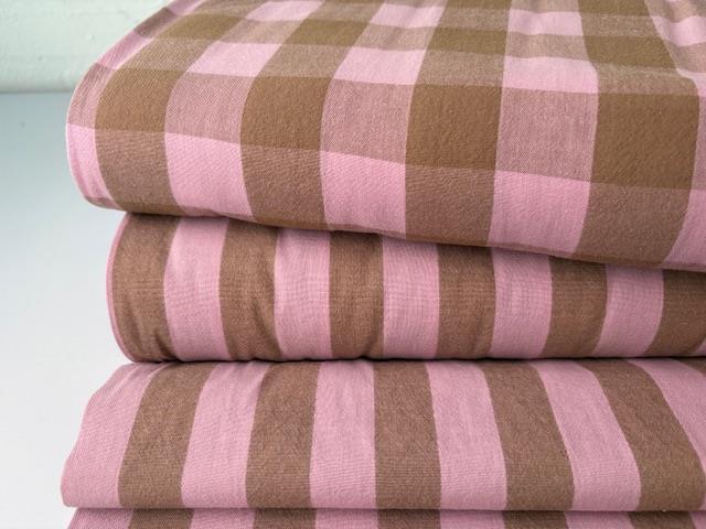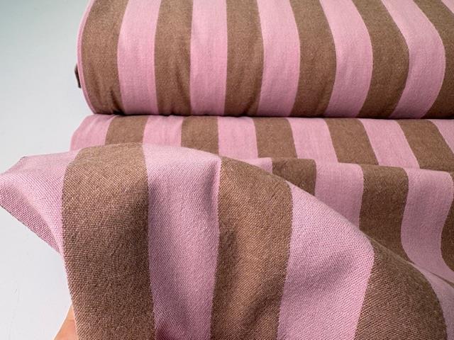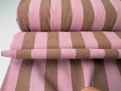 Vævet gammeldags bomuld - lækre brede striber i rosa/ nougat