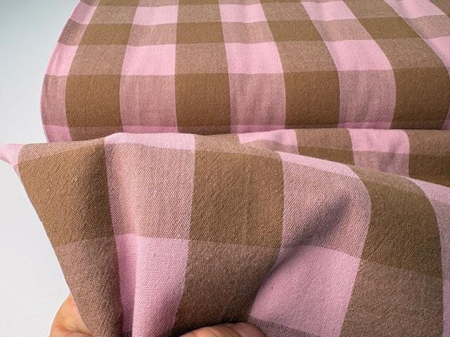 Vævet gammeldags bomuld - lækre brede striber i rosa/ nougat