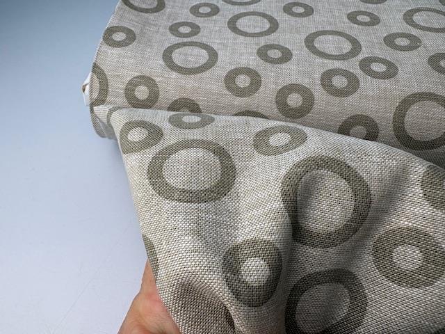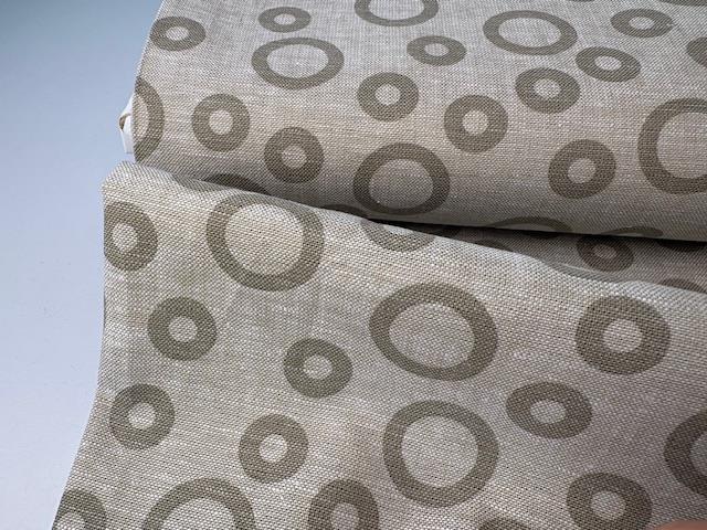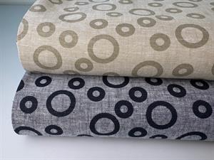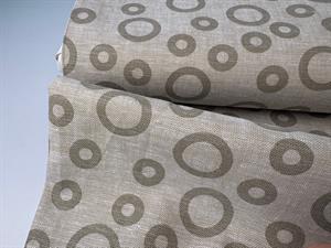 Vævet hør/bomuld - smukke grafiske cirkler i sand