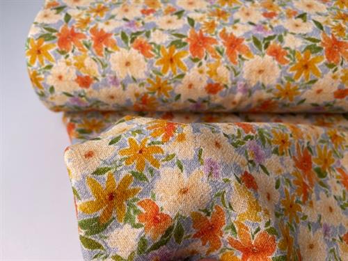 Lækker fastvævet viscoseblanding med 20% hør. Stoffet har det smukkeste udtryk med sine fine blomster. Stoffet er ideelt til lette skjorter, kjoler, nederdele og anden beklædning.