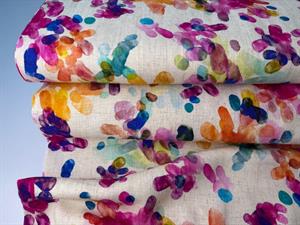 Vævet hør/viscose - intense farver på natur bund