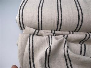 Vævet hør/viscose - natural med sorte striber i mønster