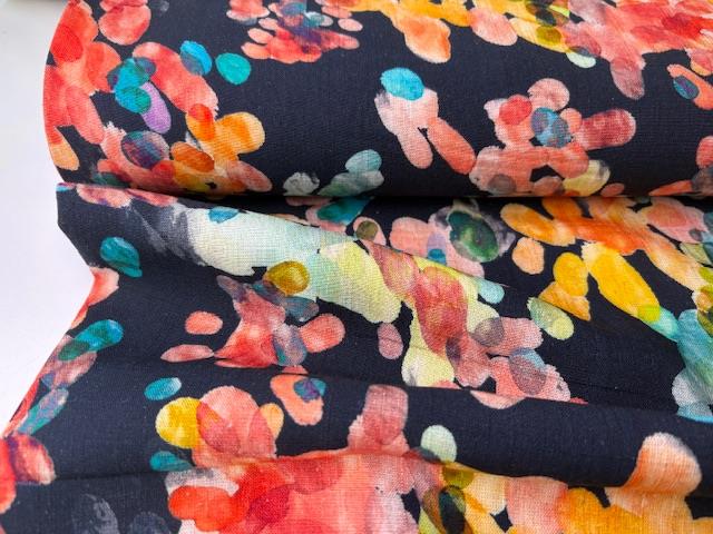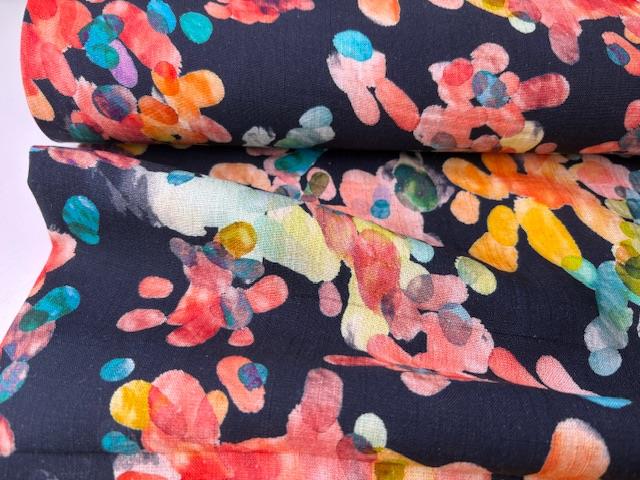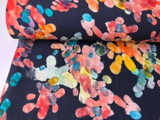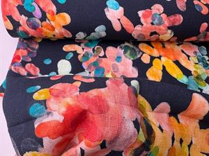 Vævet hør/viscose - intense farver på marine bund