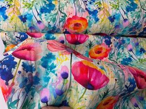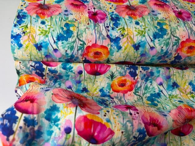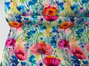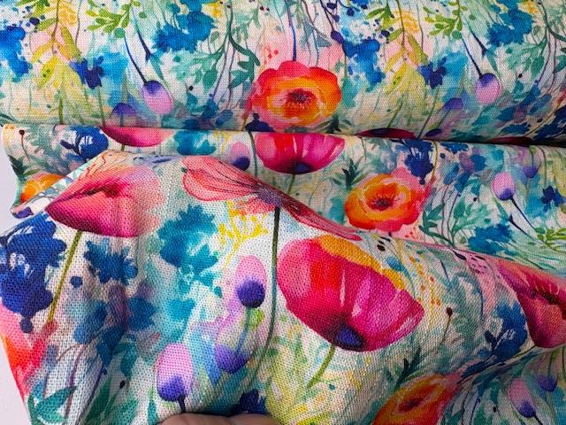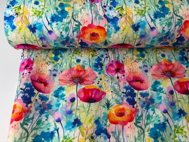 Vævet hør / viscose - fineste akvarel blomster