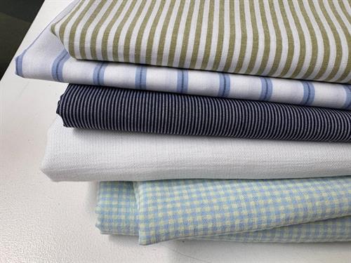 Bomuldsjersey, isoli, fastvævet viscose, hør, poplin, fastvævet bomuld, fleece, gauze og fløjl