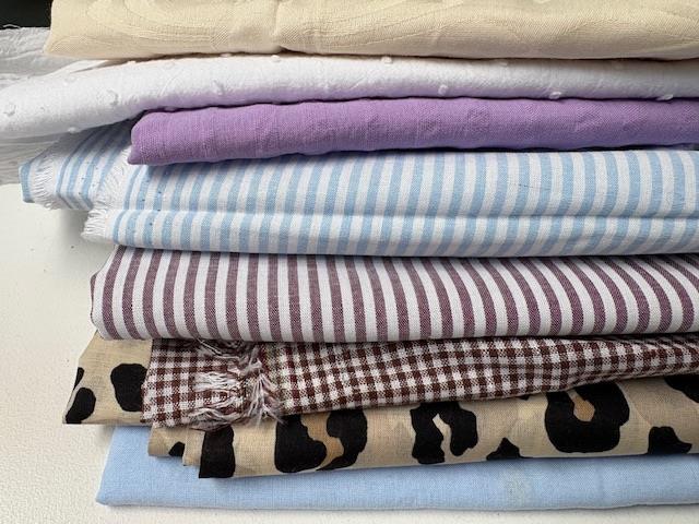 Bomuldsjersey, isoli, fastvævet viscose, hør, poplin, fastvævet bomuld, fleece, gauze og fløjl
