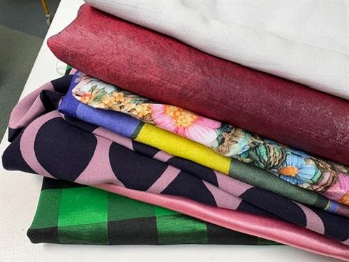 Bomuldsjersey, isoli, fastvævet viscose, hør, poplin, fastvævet bomuld, fleece, gauze og fløjl