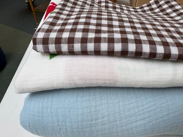 Bomuldsjersey, isoli, fastvævet viscose, hør, poplin, fastvævet bomuld, fleece, gauze og fløjl