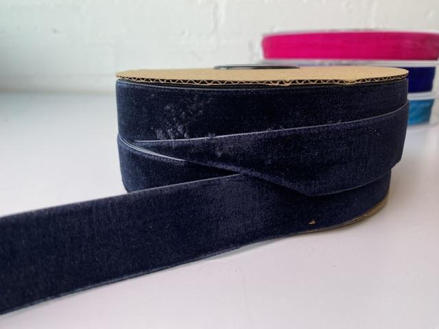 Vævet velour bånd / velvet trimming i flot marineblå. Minimumkøb er 2 meter.