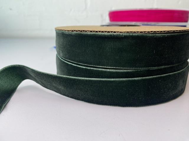 Vævet velour bånd / velvet trimming i flot flaskegrøn. Minimumkøb er 2 meter.