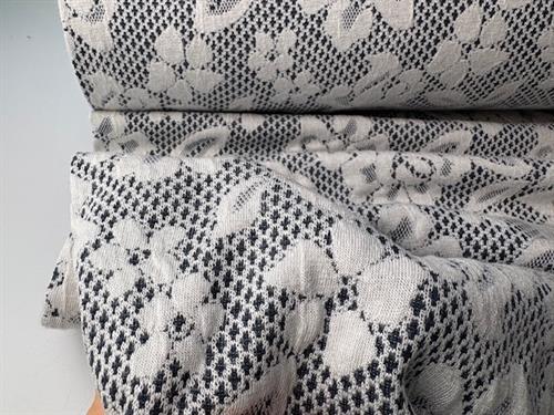 Vinter strikjersey - flotte jacquardstrikkede blomster, sort