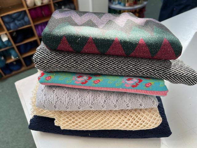 Bomuldsjersey, isoli, fastvævet viscose, hør, poplin, fastvævet bomuld, fleece, gauze og fløjl