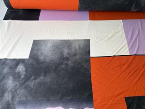 Lækker kvalitet med abstrakt mønster. Viscosejersey er velegnet til kjoler, bluser og nederdele. Det kan være noget, der sidder til eller noget med sving og sus i.
