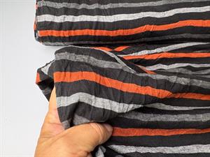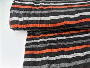 Viscosejersey - finstrik i striber i varme toner