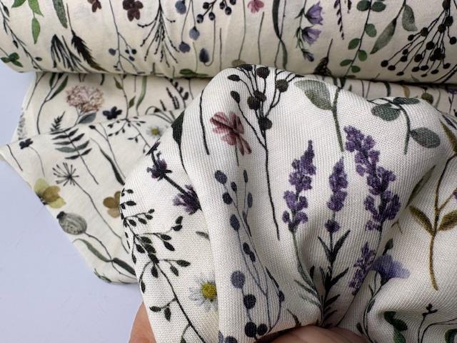 Viscosejersey - forårsblomster og lidt tyndere i kvaliteten