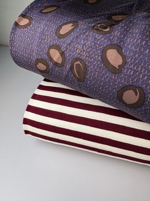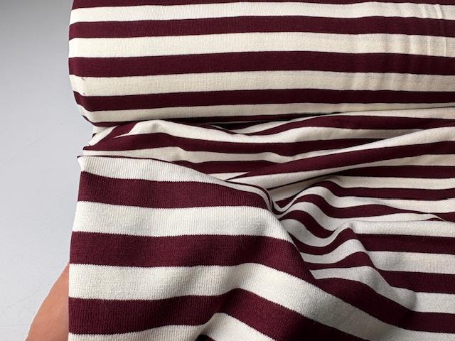 Viscosejersey - klassiske striber i offwhite og bordeaux