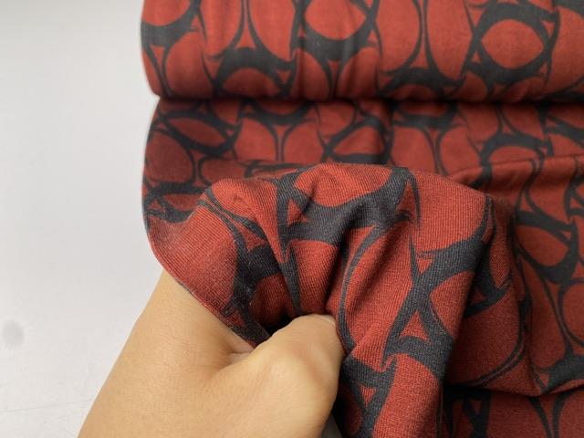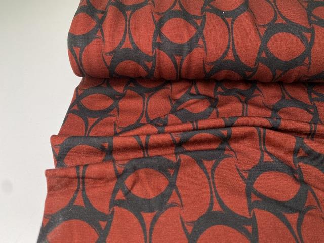 Viscosejersey - lækre motiver på mørk rødbrun bund