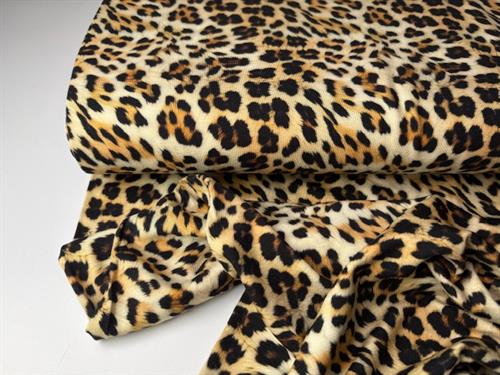 Lækker kvalitet med fint leopard print. Viscosejersey er velegnet til kjoler, bluser og nederdele. Det kan være noget, der sidder til eller noget med sving og sus i.