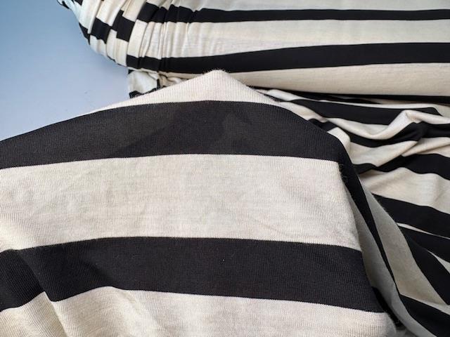 Viscosejersey - semitransparent sort og offwhite, lækker