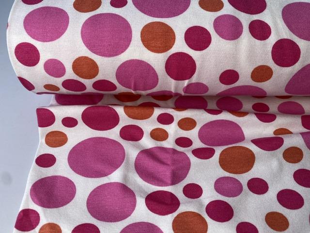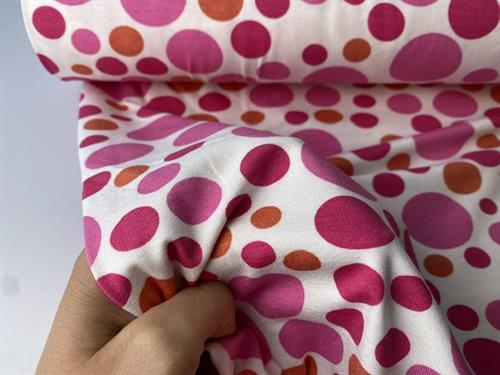 Viscosejersey - sjove prikker i lyserøde toner