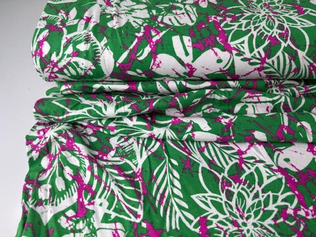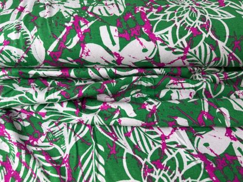 Viscosejersey - smuk grøn bund med mønster på