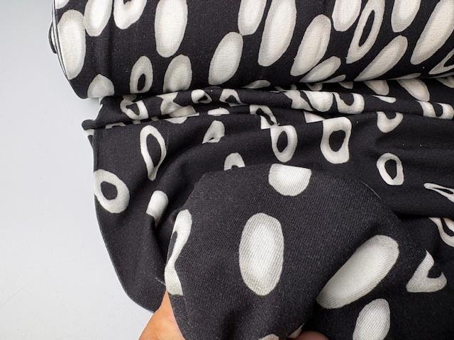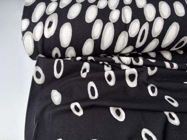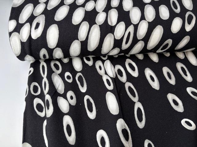 Viscosejersey - sort med hvide og grå bobler