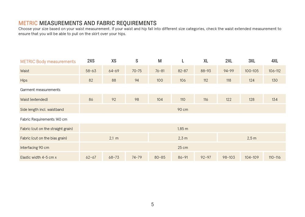 Størrelser 2XS-4XL. Modellen bærer nederdelen i størrelse M.