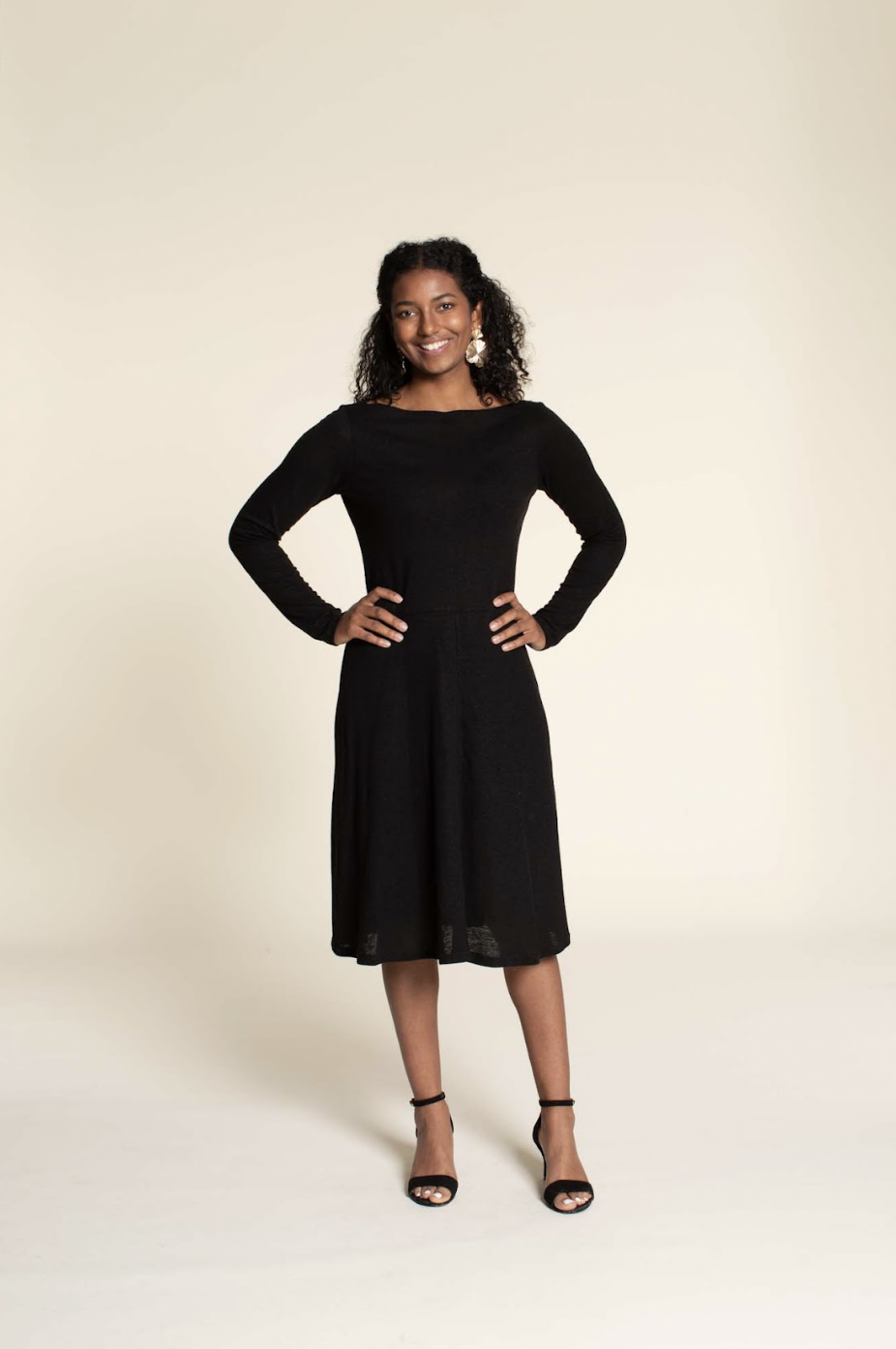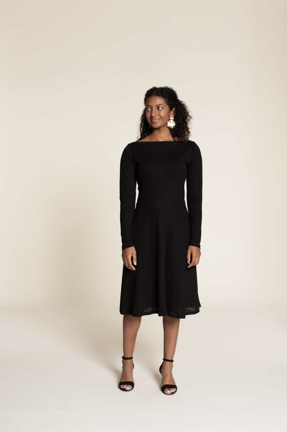 Asta-kjole symønsteret er et alsidigt og stilfuldt design, perfekt til hverdagsbrug. Mønstret har en flatterende A-facon, som giver mulighed for at sy kjoler med forskellige ærmelængder og valgfri rullekrave. Det er velegnet til strikstoffer og passer til syere på alle niveauer, med klare instruktioner, der sikrer et flot og professionelt resultat. Uanset om du syr en lun vinterkjole eller en let sommerfavorit, giver dette mønster masser af muligheder for personlig tilpasning og komfort.